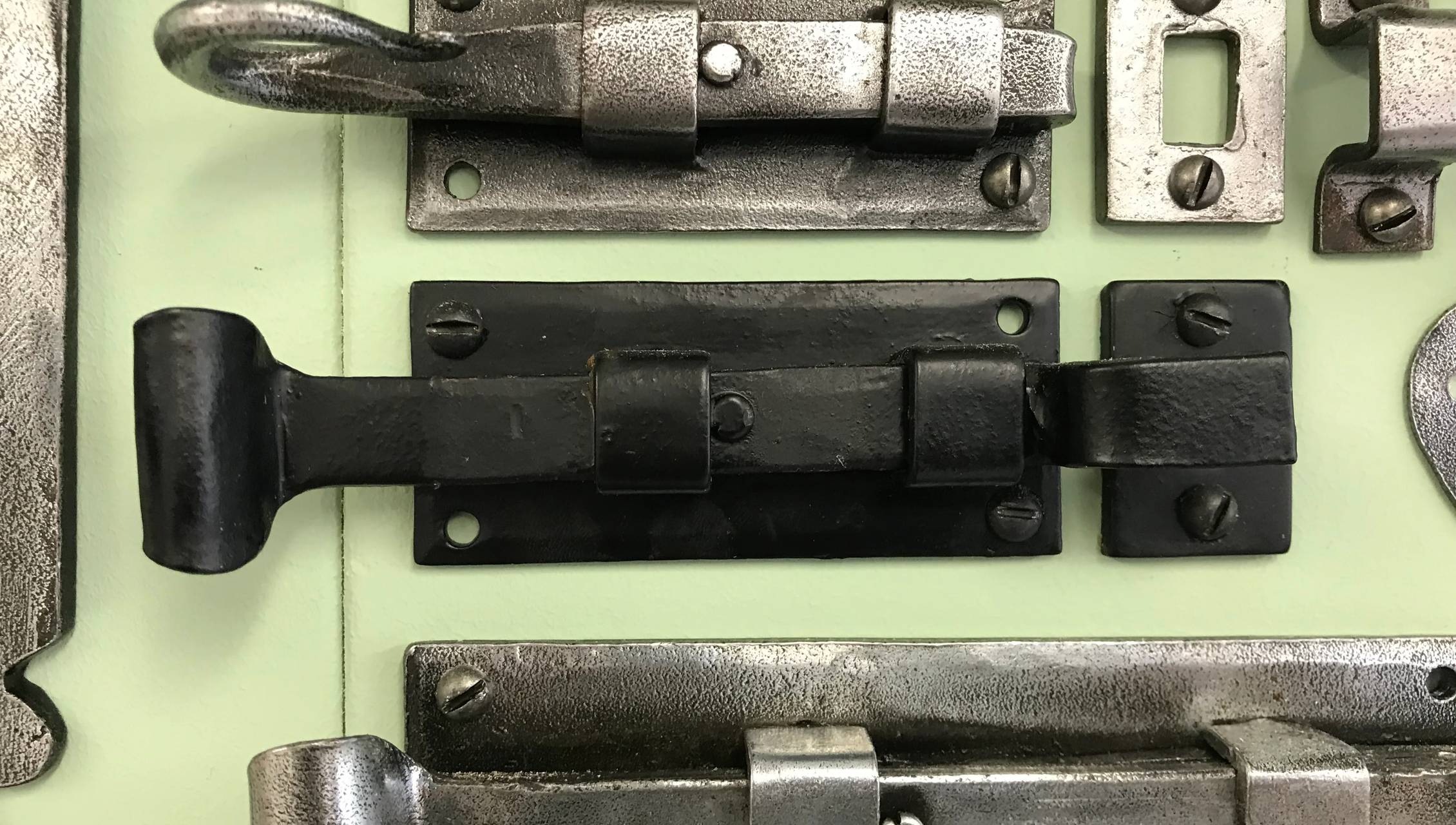Our bolts are available in black beeswax and rustic pewter in two classic designs: Fishtail & Shepherds Crook.