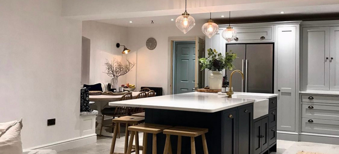 Kat and her husband did lots of research before making any final decisions about the design of the kitchen. With quotes from several companies - both high street and bespoke - they were able to compare ideas and prices. They wanted to install a true in-frame kitchen, which unfortunately wasn't an option from the usual high street stores. In the end they decided on bespoke cabinets with stunning carrara quartz worktops in shades of white and grey.