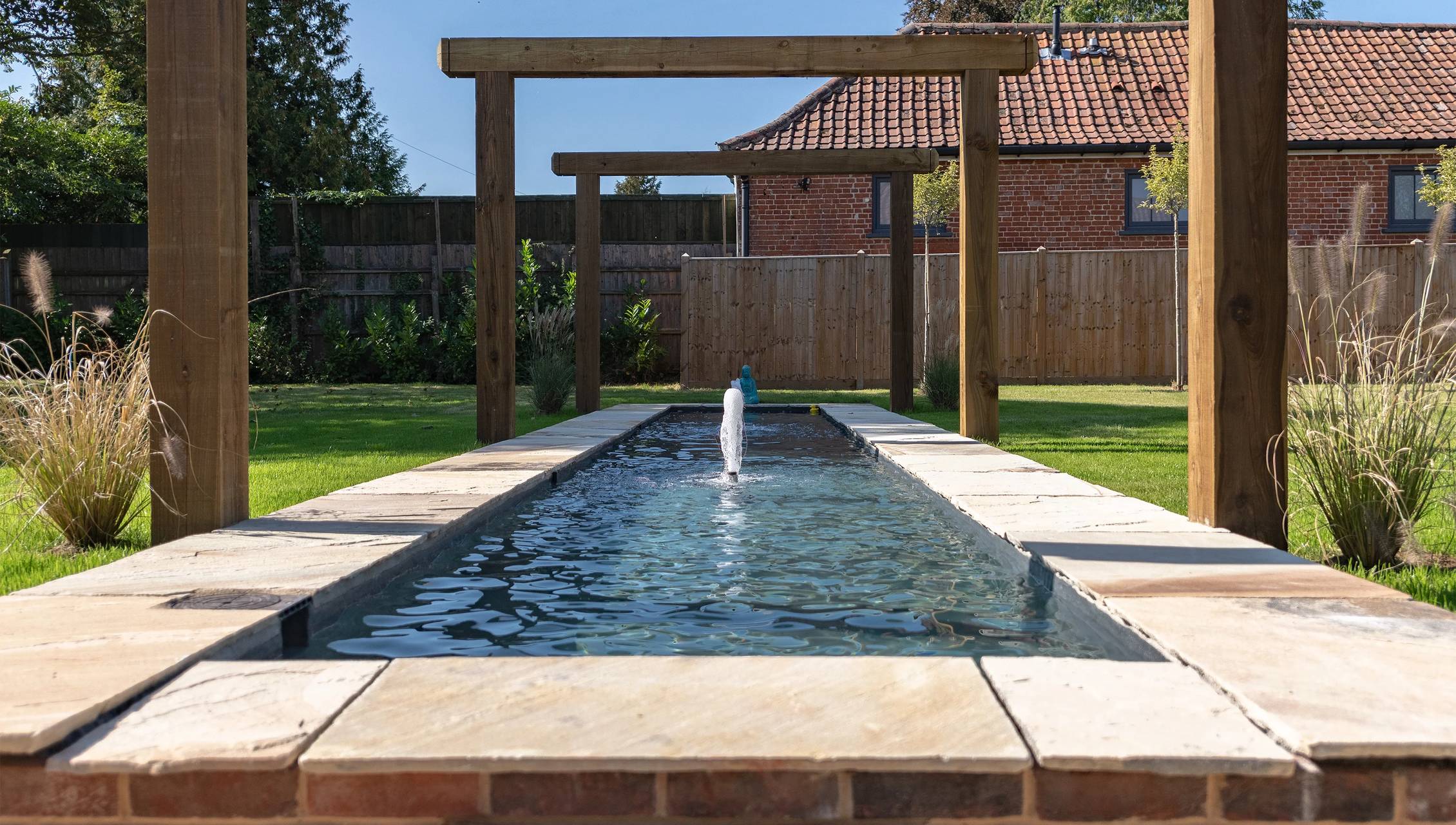 At The Hayloft, the garden is a work in progress. Already, the Dormers have created a versatile space for entertaining, with a wide terrace and seating area. Simple, yet effective. And the central water feature is a great focal point.