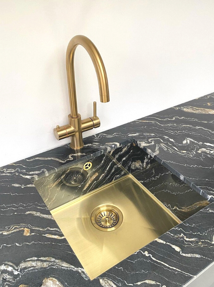 "We just had to find a solution. There was no getting away from our gold doors, as we had designed our entire kitchen in our heads and knew we needed those doors! We looked at other samples, but they weren’t right and looked too industrial. Instead we found the perfect gold colour paint and had the doors bespoke sprayed."