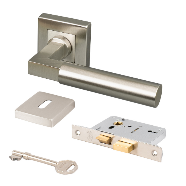 The square rose door handles have a striking modern look. A bold geometric design for contemporary interiors. Choose from standard square rose handles with push fit rose plates, or low profile handles with an ultra slim screw-on rose plate suitable for doors with a minimum thickness of 44mm.