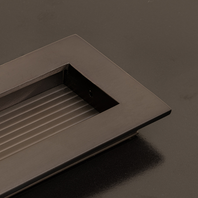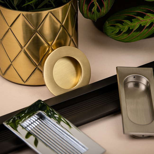 Hardware for sliding doors needs to be flush fitting to allow for doors to be pulled open and closed with seamless ease. Standard handles protrude from the surface and are not suitable for sliding or pocket doors.