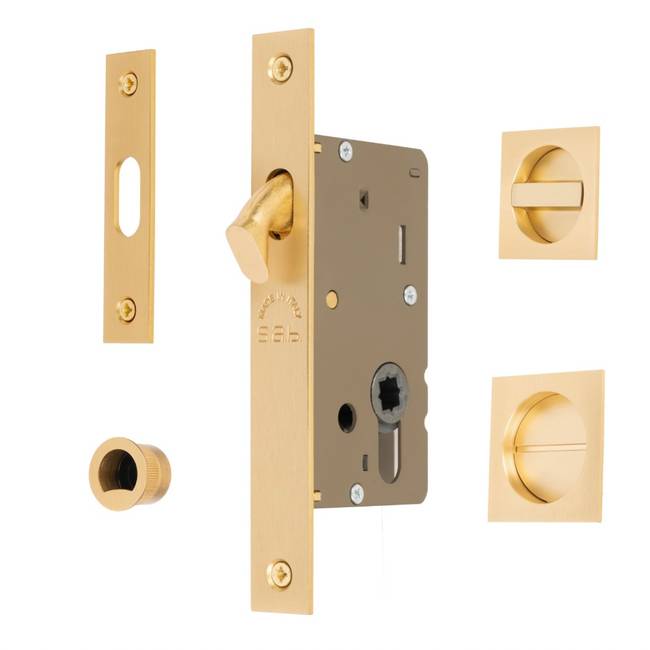 Sliding Door Lock Set with Square Privacy Turn in Satin Brass