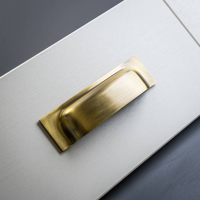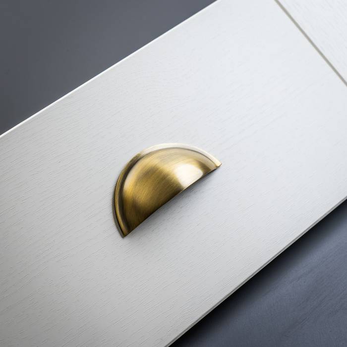 Brass Cup Pulls for your kitchen cupboards and drawers. These classic cup pulls in antique & polished brass are available in range of front and rear fixing designs.