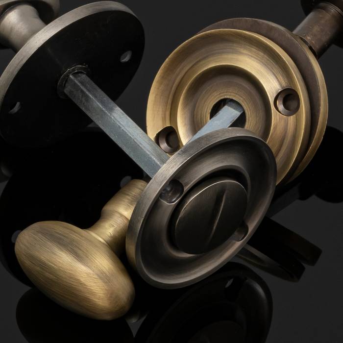 Our bun door knobs are sold as pairs and come supplied with a mortice bar and fixing screws. The wooden bun door knobs are solid rosewood and available in a polished or ebonised finish. With removable rose plates, these are suitable for both mortice and rim lock fitting. The mushroom door knobs from the Old English Collection are made from solid brass and available in five distinct finishes, only suitable for mortice fitting with a tubular latch.
