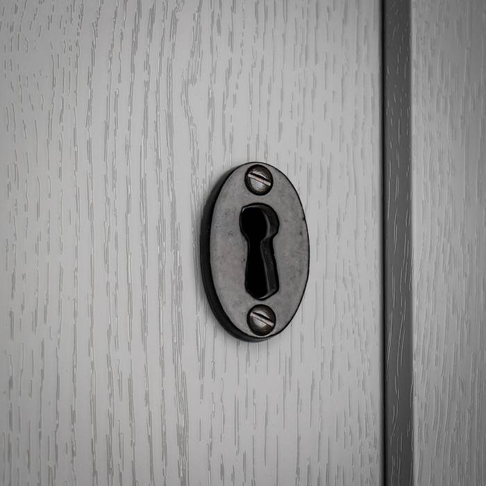 A covered oval escutcheon is a good choice if you are looking for a way to prevent draughts coming through your keyhole. An uncovered keyhole plate is a simple alternative and offers a neat finish to your keyed doors. Co-ordinate with our range of oval cast iron and brass Door Knobs.