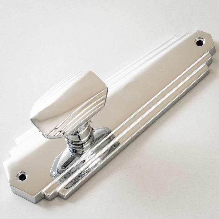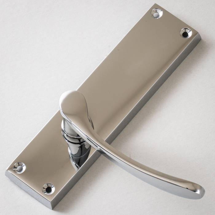 These Polished Chrome Door Handles On Backplate are available in a wide range of styles. From vintage Art Deco to sleek minimalist designs, we have a handle for every home. Choose from latch, lock, Euro and bathroom versions suitable for internal and external doors.