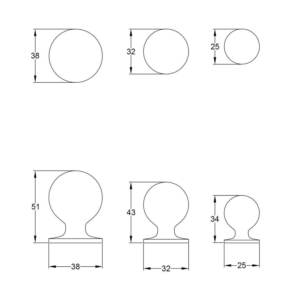 For measurements of the Ball Cabinet Knobs, please see the PDF drawing in the Dimensions tab. See also our range of co-ordinating Cupboard Pull Handles.