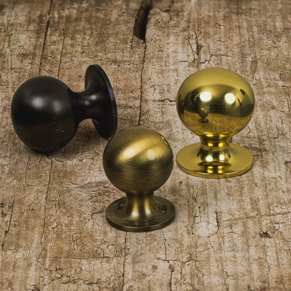 Ball Cabinet Knobs are a classic choice for cupboards and drawers. A simple ball design made from a one-piece casting. Solid brass knobs are the ideal choice for kitchens and offer timeless style. These knobs are available in 25mm, 32mm and 38mm sizes, in a choice of six distinctive finishes: aged brass, polished brass, polished chrome, matt bronze, satin nickel and satin brass. These are rear fixing knobs supplied with screws.