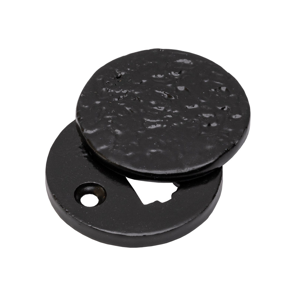 Our black cast iron escutcheons are available in a choice of classic designs for your internal doors. These keyhole covers are made from cast iron which has been coated with a durable black epoxy finish. The light hammered effect offers the keyhole cover an antiqued look and is the ideal choice for period properties. Co-ordinate with our range of black cast iron door knobs.