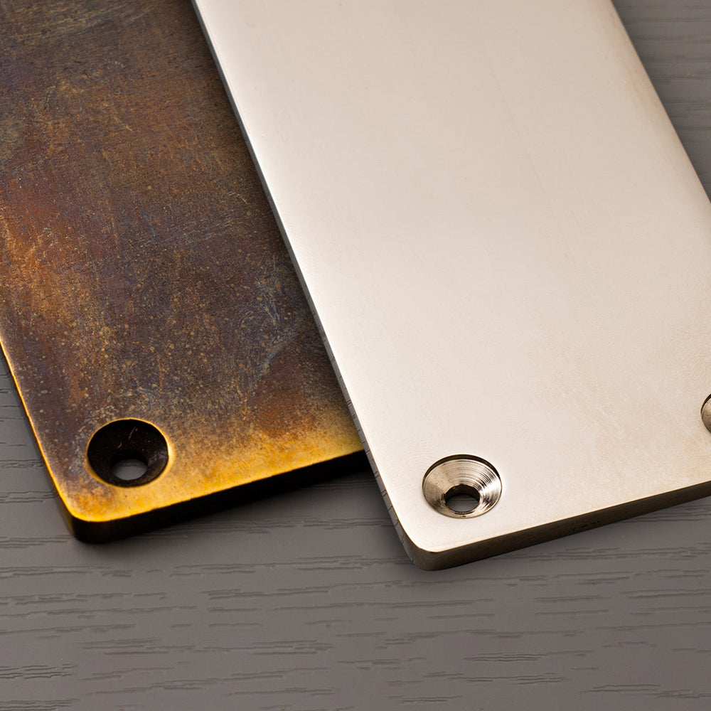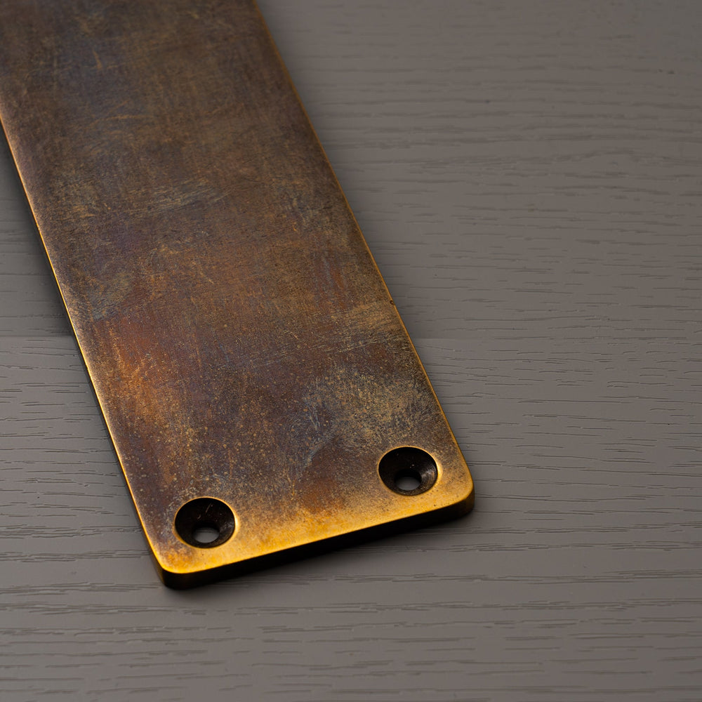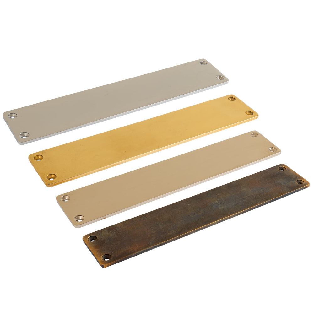 Brass Door Plates are also known as push plates, finger panels or finger plates. They were originally introduced as a door accessory to prevent finger marks on doors and were found in most homes during the Victorian era.