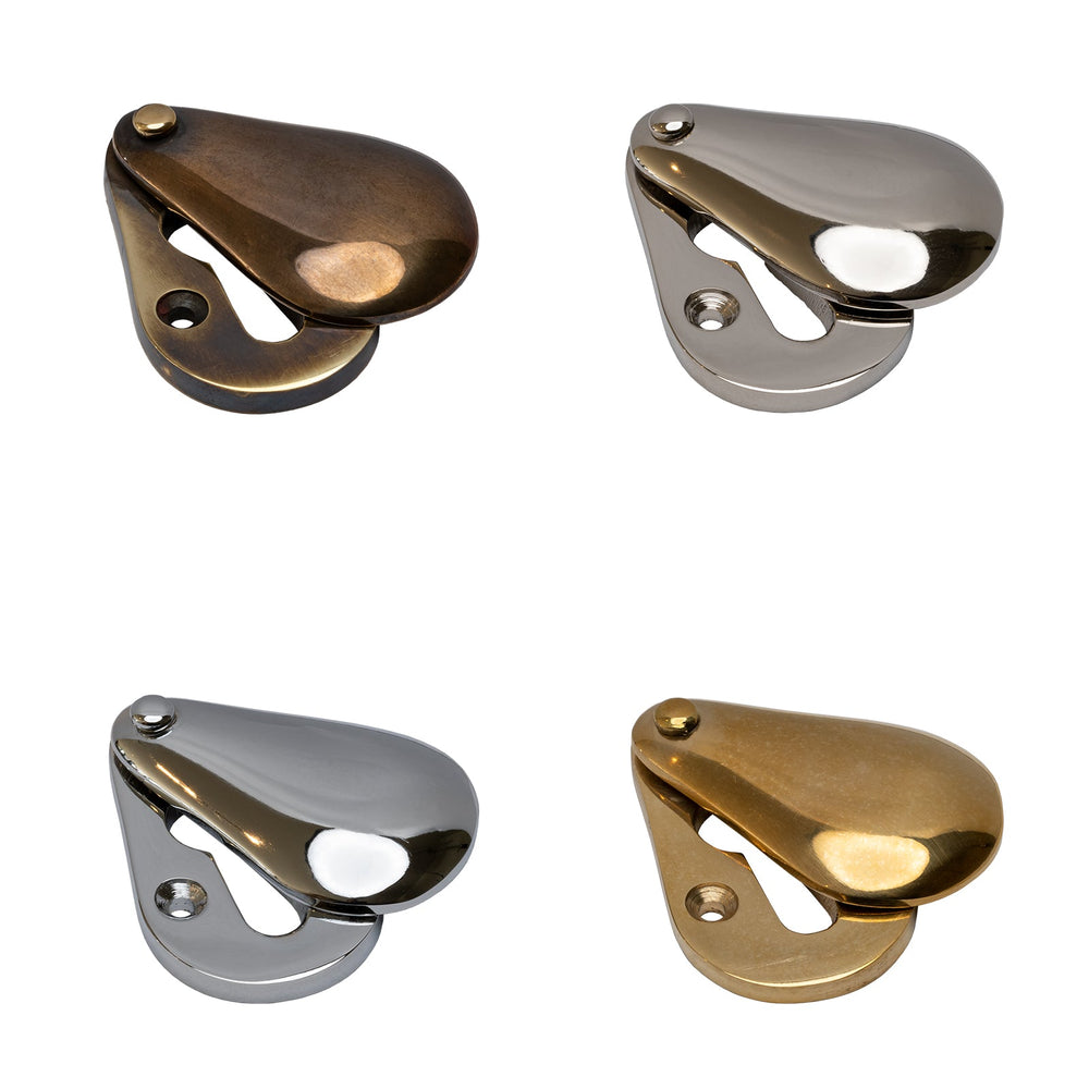 Brass pear drop covered escutcheons offer classic style for your internal doors. Escutcheons provide the perfect finishing touch to your door locks and these keyhole covers will also help minimise draughts in your home. Our pear drop escutcheons are made from the finest solid brass and available in four distinctive finishes: polished brass, antique brass, polished chrome and polished nickel.