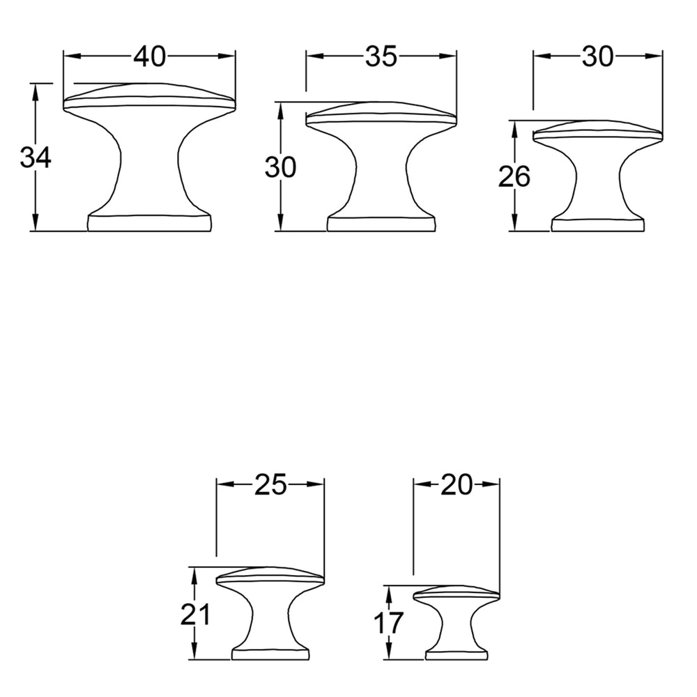 - Dimensions: 40, 35, 30, 25 & 20mm