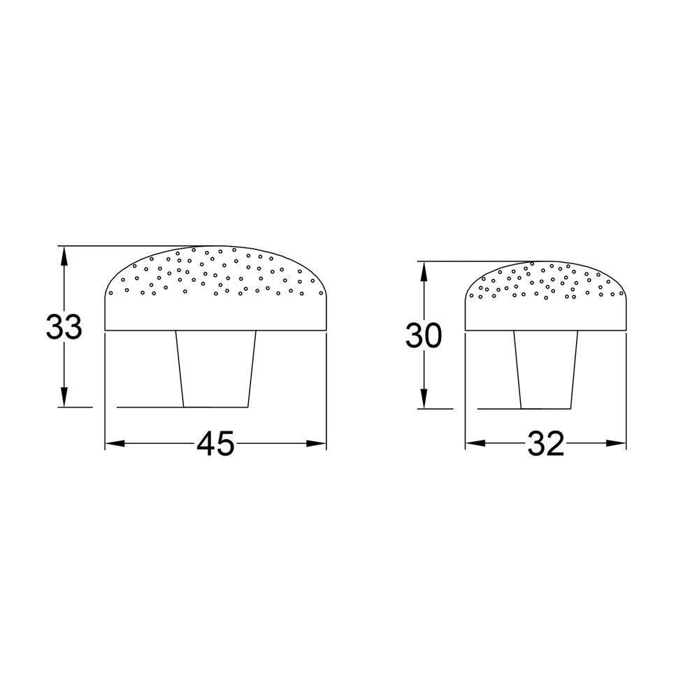The cast iron dotted cabinet knob measurements can be found in the PDF drawing in Dimensions.