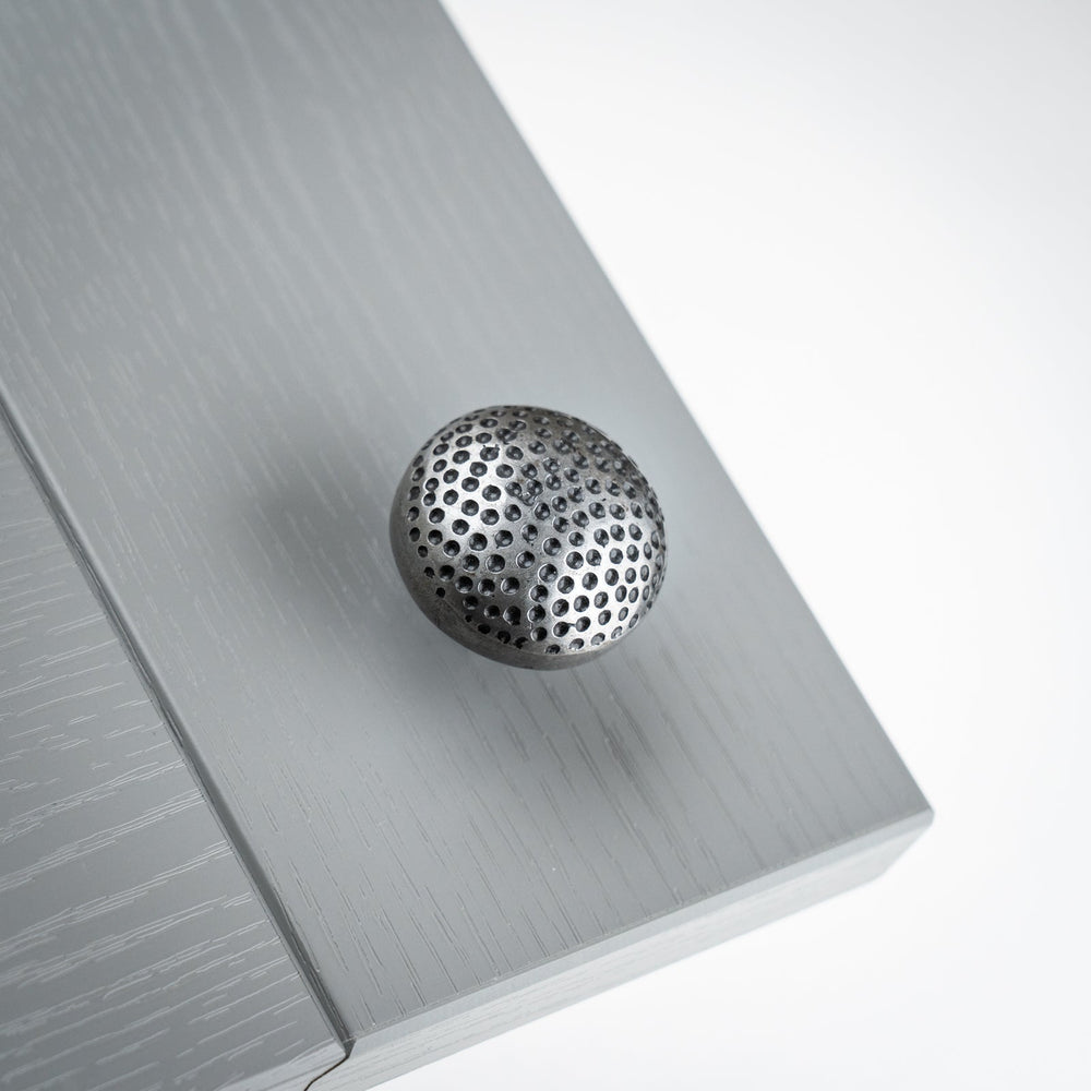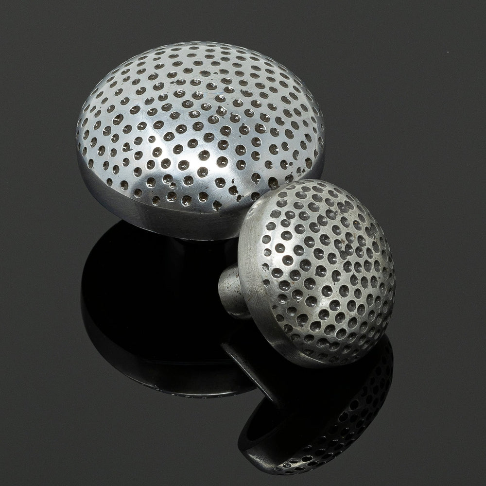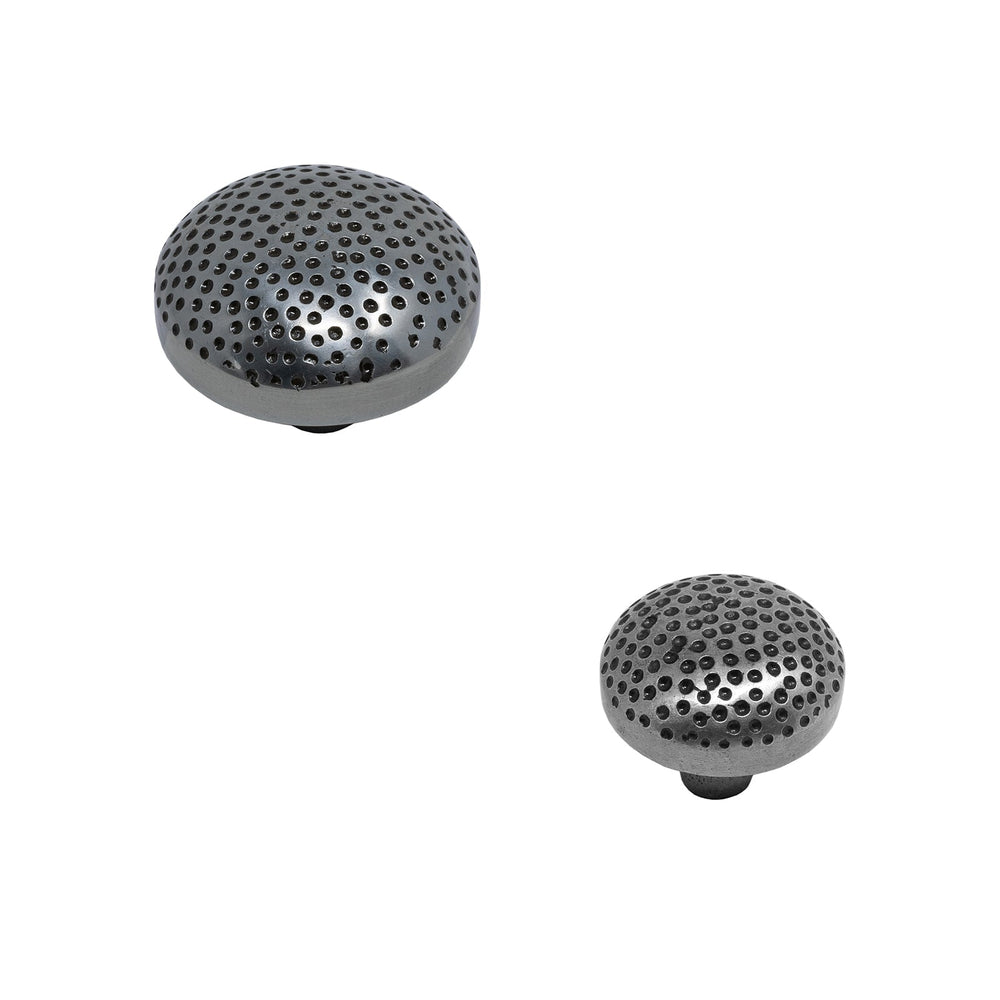Cast iron dotted cabinet knobs have a small polka dot design with a burnished and lacquered finish. These quirky solid iron cabinet knobs are the perfect choice if you are looking for something unusual for your kitchen cupboards and drawers. Available in two sizes. Co-ordinate these knobs with one of our antique iron Cup Pulls.