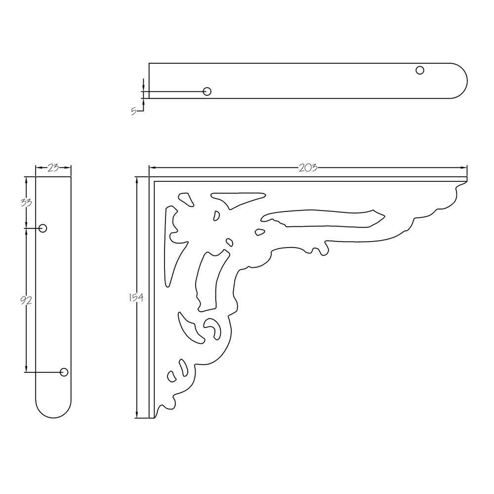 For measurements of the apple cast iron shelf bracket, please see the PDF drawing in Dimensions.