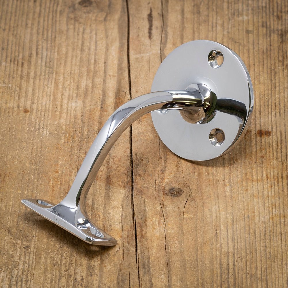 This chrome handrail bracket is designed to be used as a stair handrail support. Made from solid brass and with a polished chrome finish, handrail brackets could also be used as a small grab handle for the side of baths and toilets. See also our Satin Chrome Handrail Bracket.