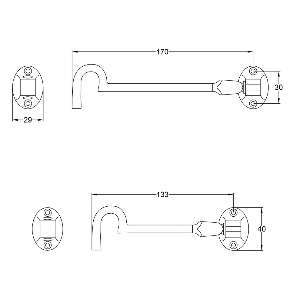 Cabin hooks are a useful door hardware accessory for holding doors open, to prevent them banging, and to let fresh air circulate. Ideal for patio doors, cupboards, gates and French doors. Also a great feature for shed doors. The medium 6 inch cabin hook is a versatile size for most doors. Choose the 4 inch hook for smaller doors or for keeping a door close to the wall.