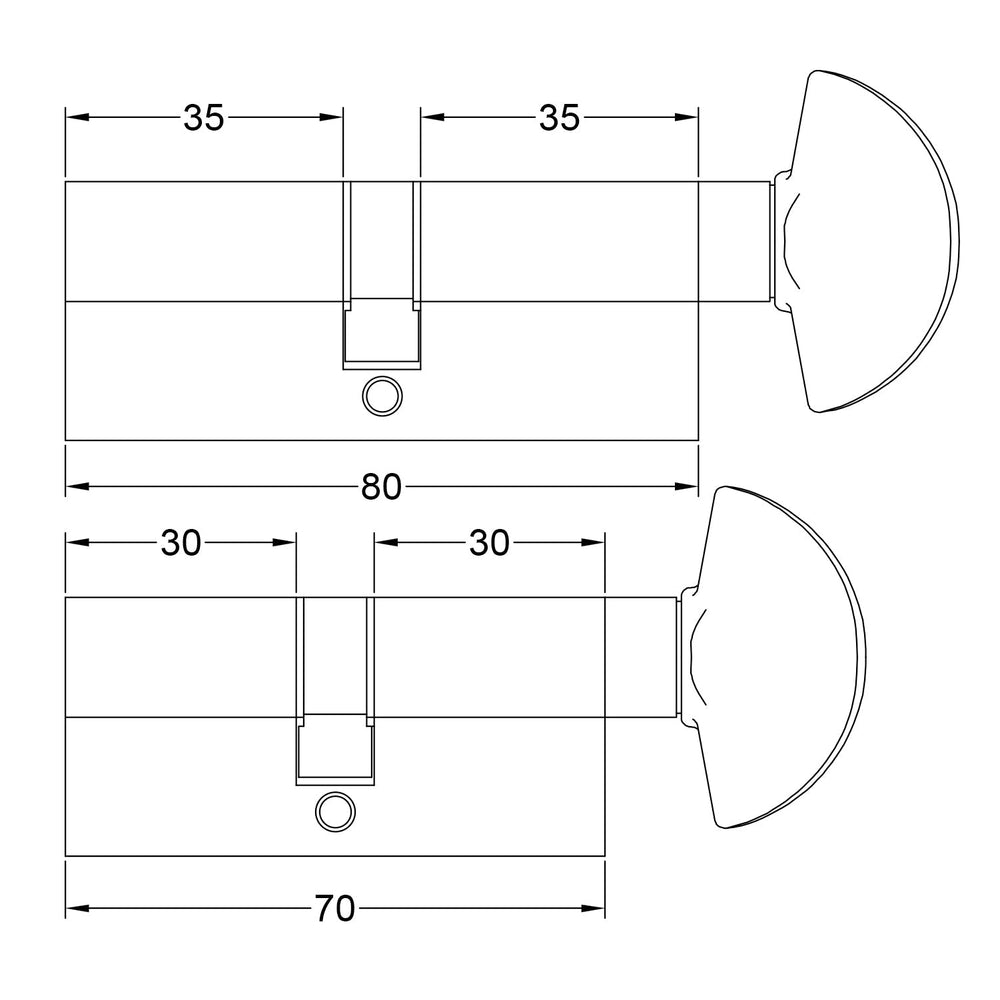 The 15 pin cylinder locks are available in two sizes: 70mm & 80mm lengths suitable for 45mm and 55mm doors.