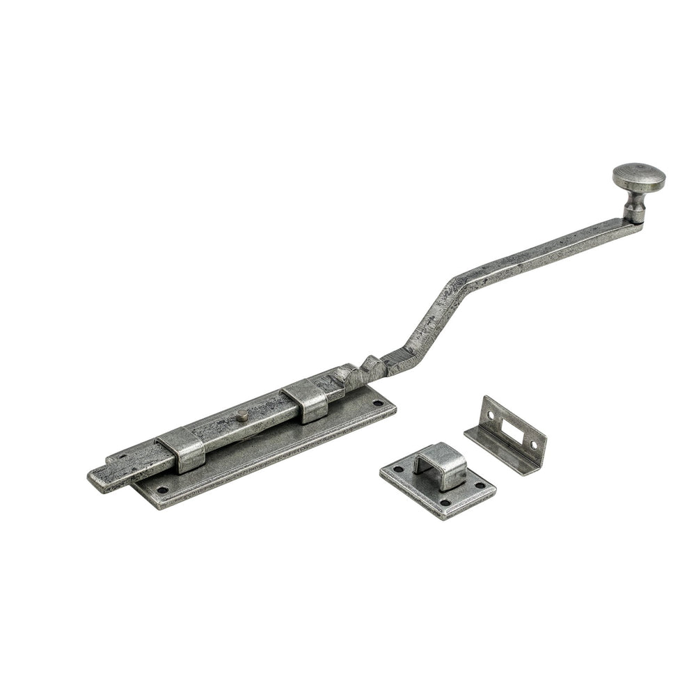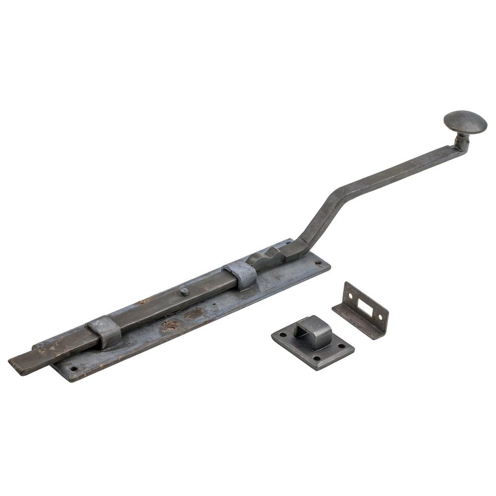 These French door bolts feature a long, cranked handle for easy operation once fitted. They are supplied with a variety of keeps, permitting its use on both inward and outward opening doors.