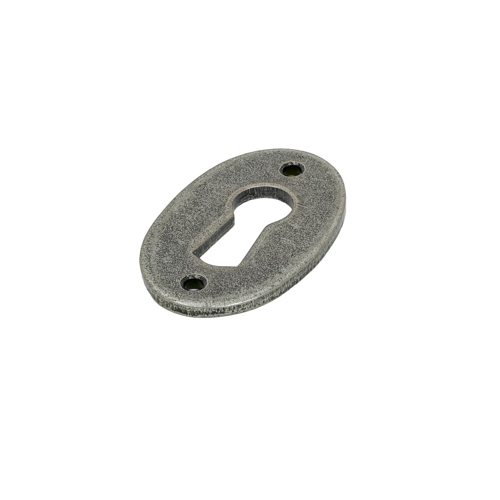 Our oval escutcheons are designed to complement all our mortice knob and lever on rose designs. This escutcheon uses a standard or euro key hole, permitting its use with a multitude of locks.