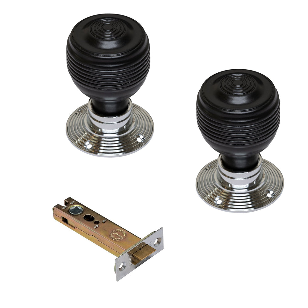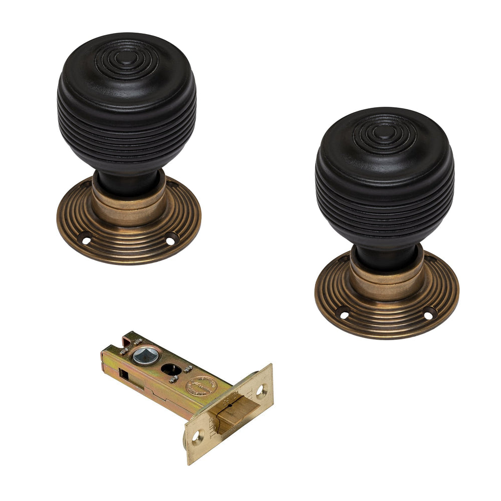 - Latch Set: Pair of Georgian knobs with a 3 or 4 inch Fire Rated CE 1121 heavy duty tubular latch with matching face plates.