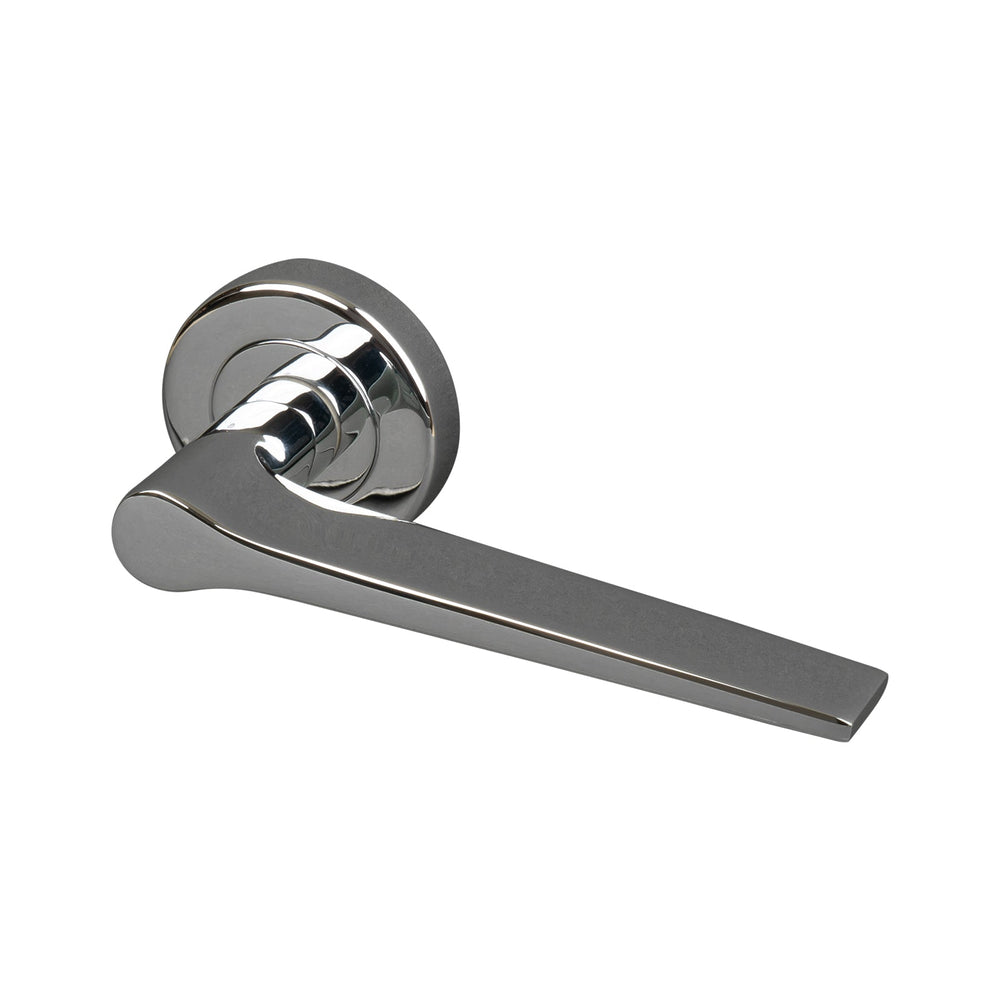 Gio Round Rose Door Handles have a sleek modern design ideal for contemporary interiors. An elegantly shaped lever handle set on a circular rose. Also known as a lever on rose handle, this is a popular style with concealed fixings and a streamlined designer look.