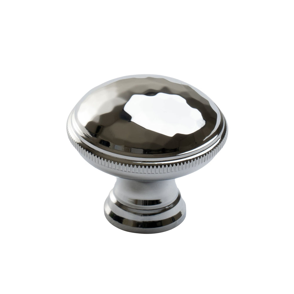 Choose from aged brass, polished brass, polished chrome, satin nickel, satin brass, matt bronze and black. This beaten knob style is a popular choice for period properties and classic kitchen designs.