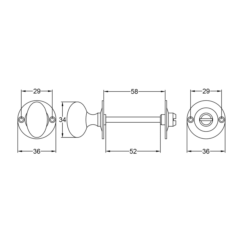 For measurements of the oval bathroom turn & release, please see the PDF drawing in Dimensions.