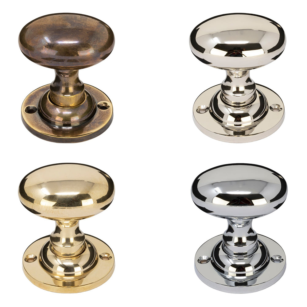 The Oval Brass Door Knobs are a great choice for a traditional panelled door. These unsprung door knobs are made from quality solid brass and are not hollow. Available in a choice of four polished finishes: brass, antique brass, nickel & chrome. The polished finishes are achieved through a chemical process rather than a lacquer or coating.