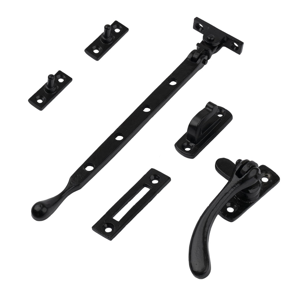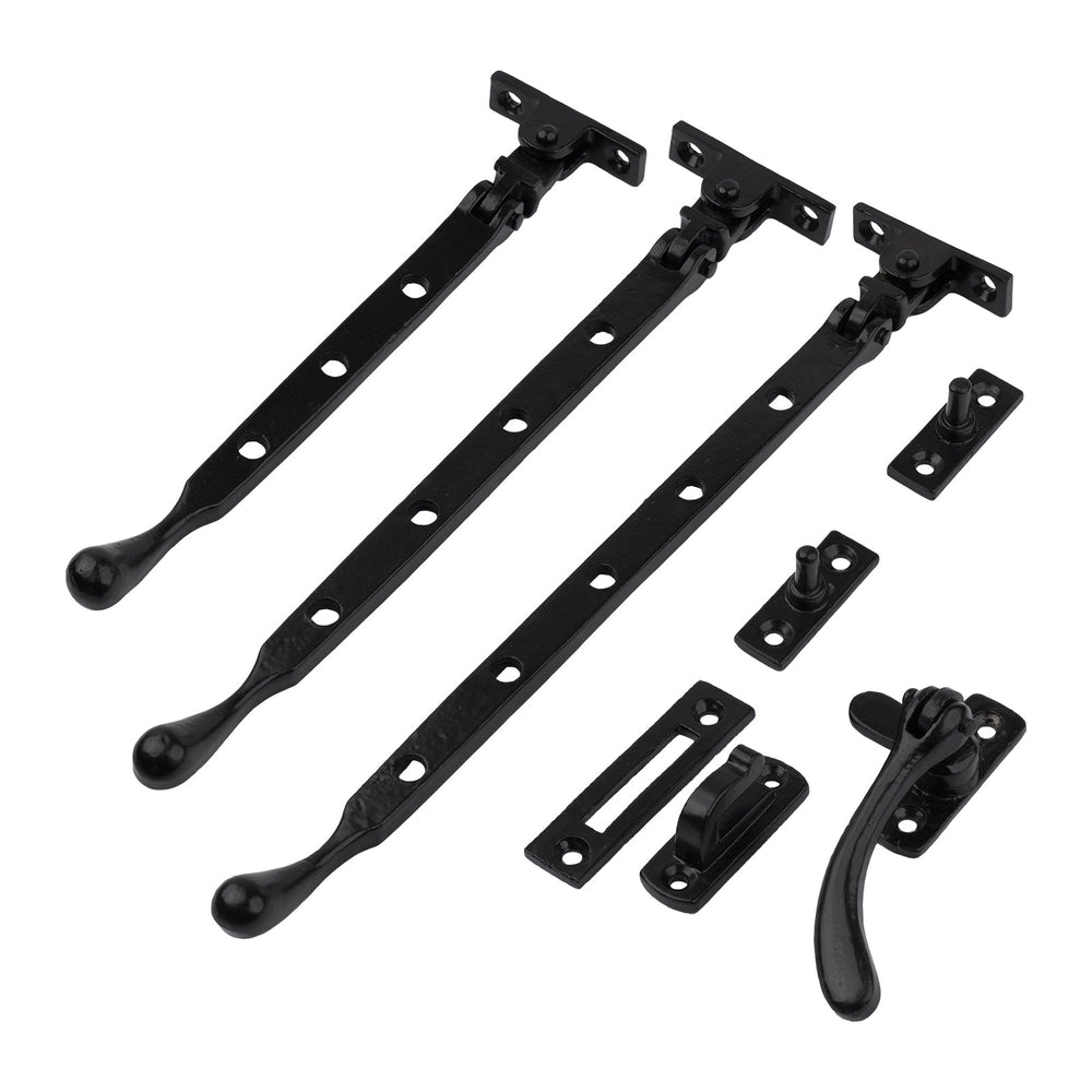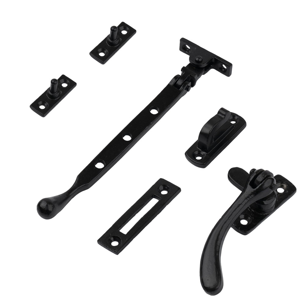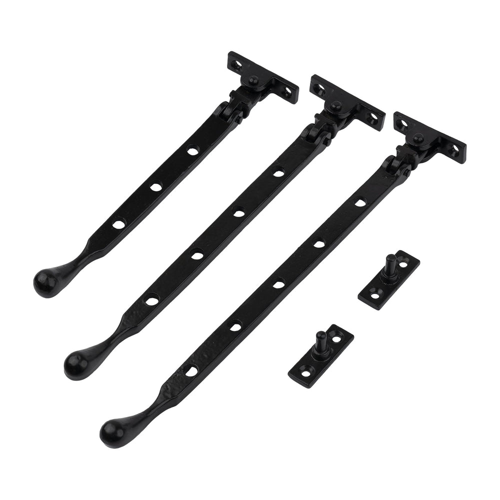 Please note: Cast iron is a ferrous metal. The black epoxy finish will protect the window stays from rusting, however rust spots may appear if the coating becomes worn or damaged. For ongoing maintenance, it helps to apply a light oil onto the moving parts to prevent corrosion.