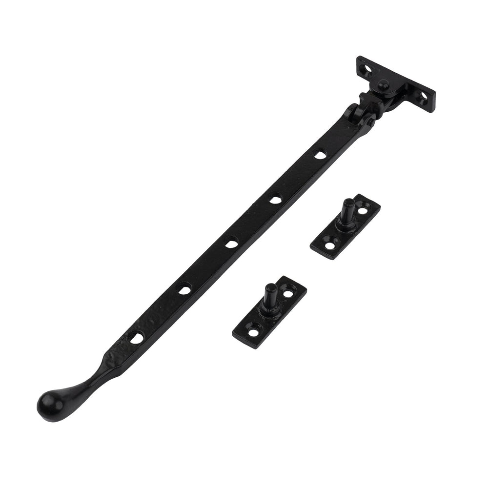Black Pear Drop Window Stays are a traditional design for casement windows. A classic pear drop design often found in period properties and cottage style homes. The stays are made from solid cast iron and have a hard wearing black epoxy coating. Pear drop window stays are available in three sizes and are suitable for most timber casement windows.