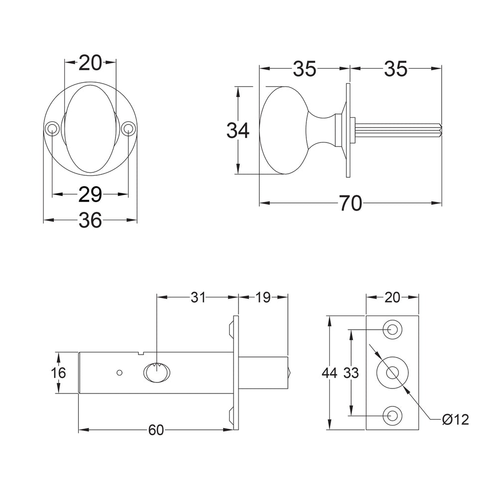 For Rack Bolt & Rack Bolt Thumb Turn measurements please see the PDF drawing in Dimensions.