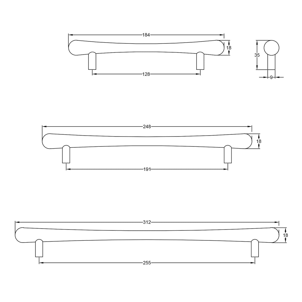 The pull handles are sold singly with a choice of 128mm, 192mm & 256mm sizes. The largest size could also be used as a door pull.