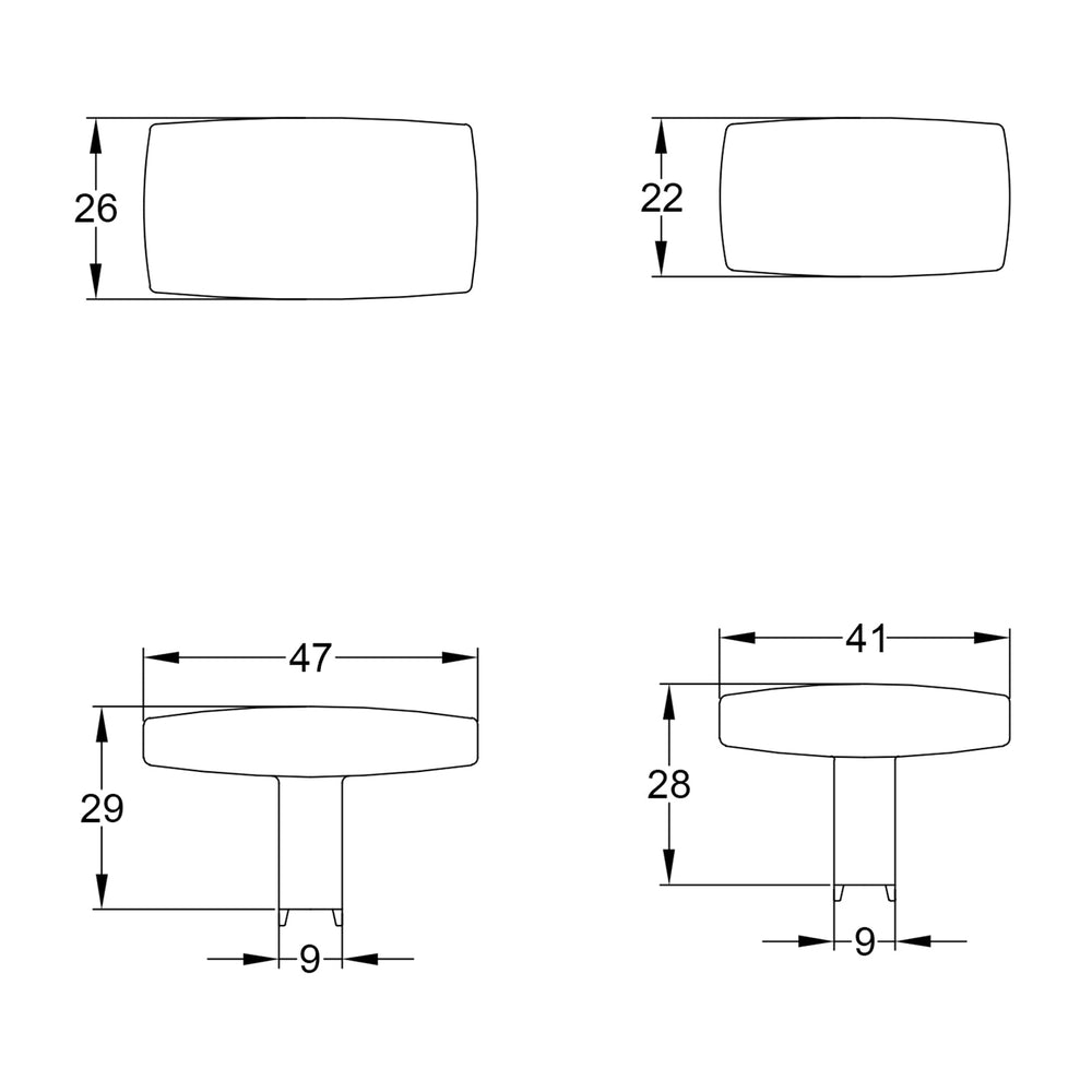 For measurements of the Rectangular Cabinet Knobs, please see the PDF drawing in the Dimensions tab. See also our range of co-ordinating Cupboard Pull Handles.