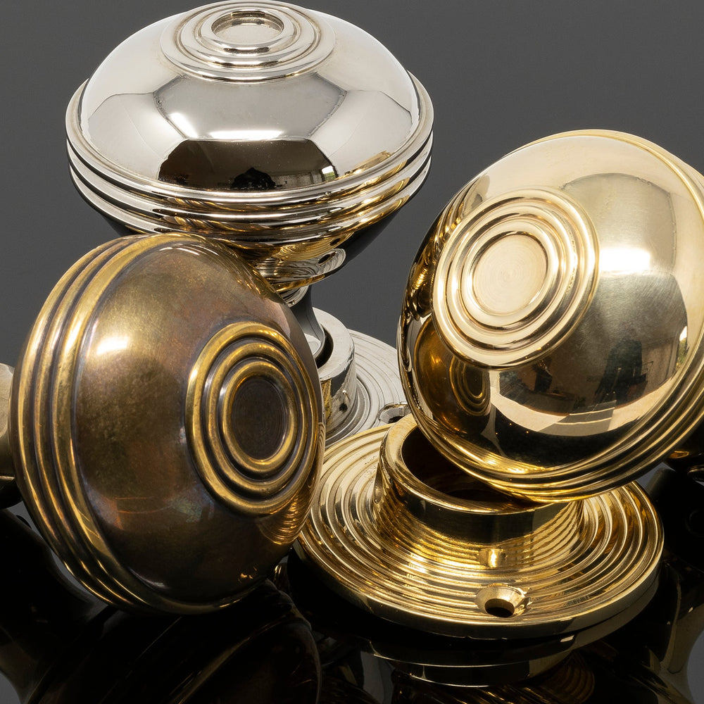 The Ringed Brass Door Knobs have a classic design that is ideal for period properties and vintage style interiors. Sold as pairs with a mortice bar and matching fixings. Choose from knobs only or sets with latch/bathroom lock options.