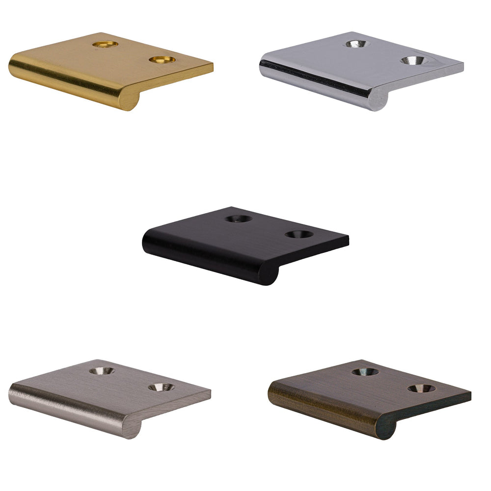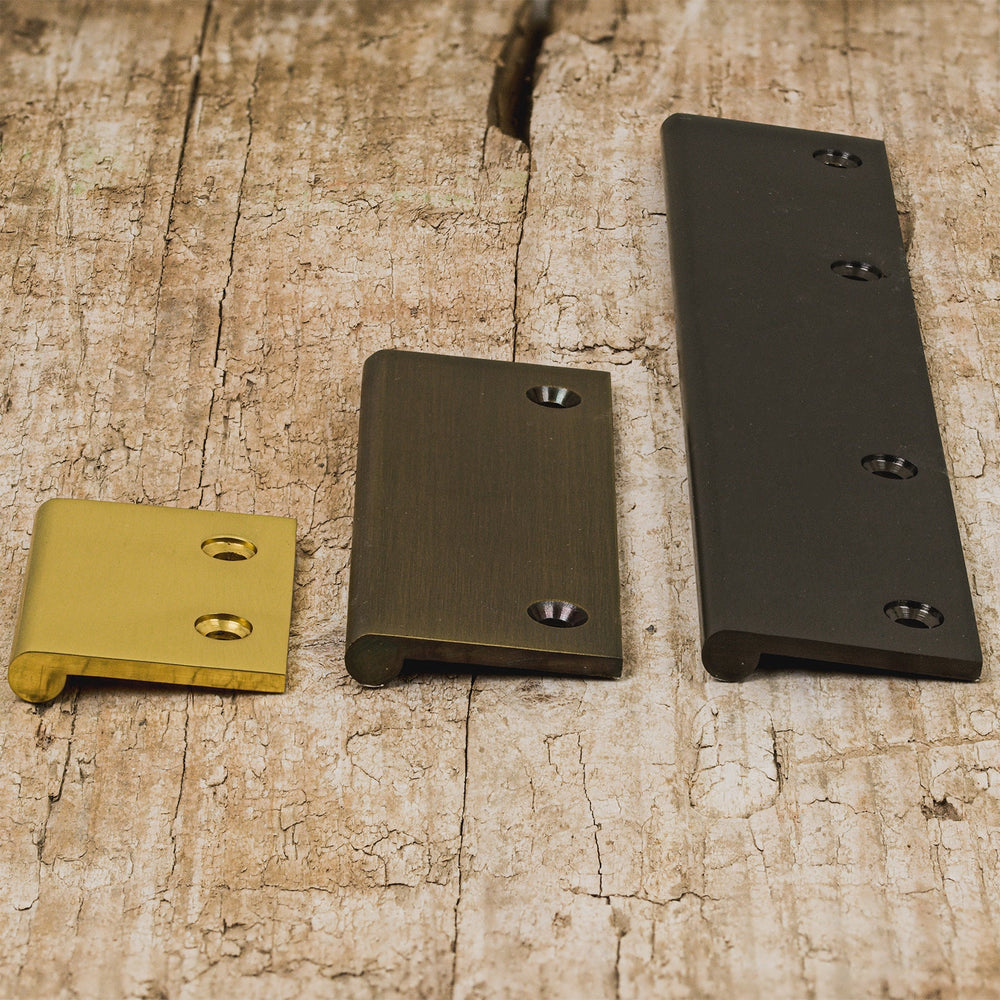 The edge pulls are available in small, medium and large sizes, in a choice of seven distinctive finishes: aged brass, polished brass, polished chrome, matt bronze, satin nickel, satin brass & black.