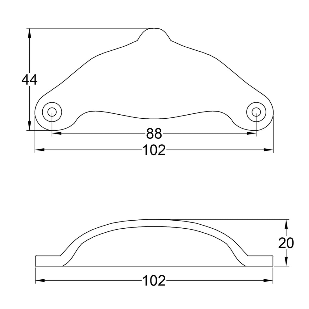 The cup pulls have a sea shell design and are available in burnished and black finishes. The burnished pull handle has been polished and lacquered for moisture protection. Choose the black sea shell handle if you are looking for a striking contrast to your cabinets. Co-ordinate with matching cupboard knobs and cupboard pull handles.