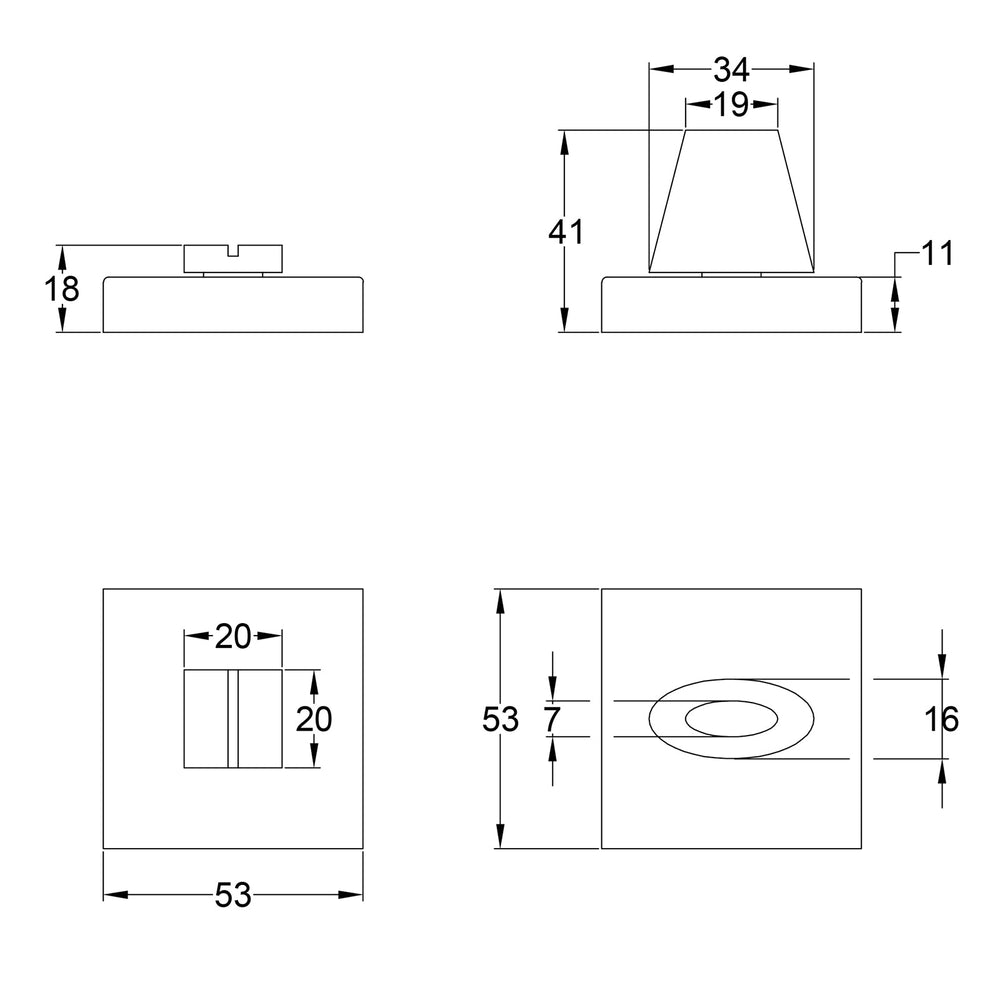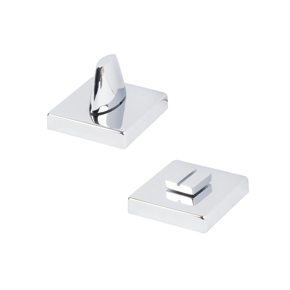 The Square Bathroom Turn & Release is a thumb turn lock for bathroom, toilet and bedroom doors. Featuring a square rose plate and conical knob turn, this privacy lock matches the Square Rose Door Handles. With concealed fittings, this geometric turn lock offers a sleek modern look.