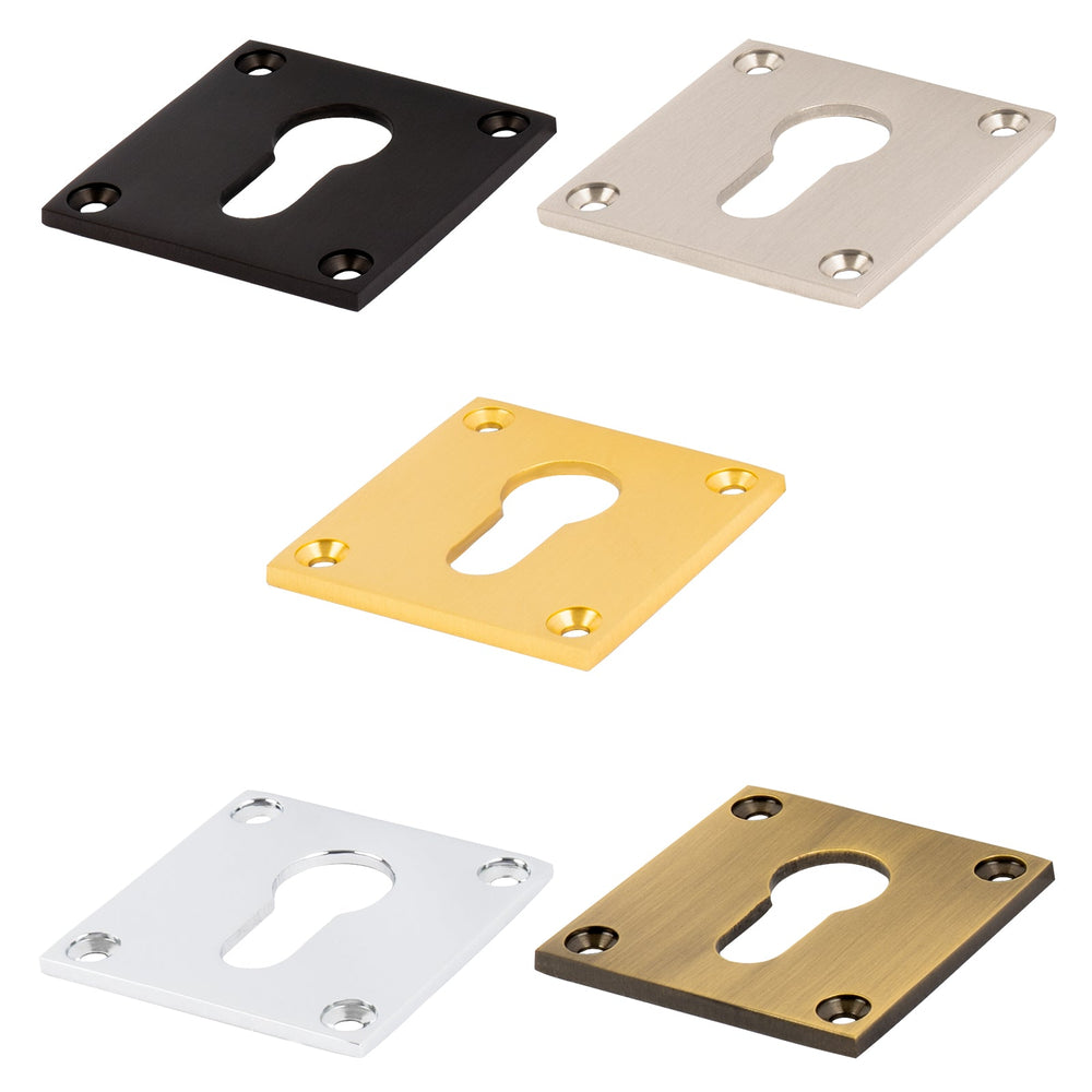 The Square Brass Escutcheon Euro Low Profile has a simple square 54mm x 54mm design with an ultra slim screw-on plate. Escutcheons, also known as keyhole covers, are metal plates fitted over a keyhole to give an elegant finishing touch to a door.