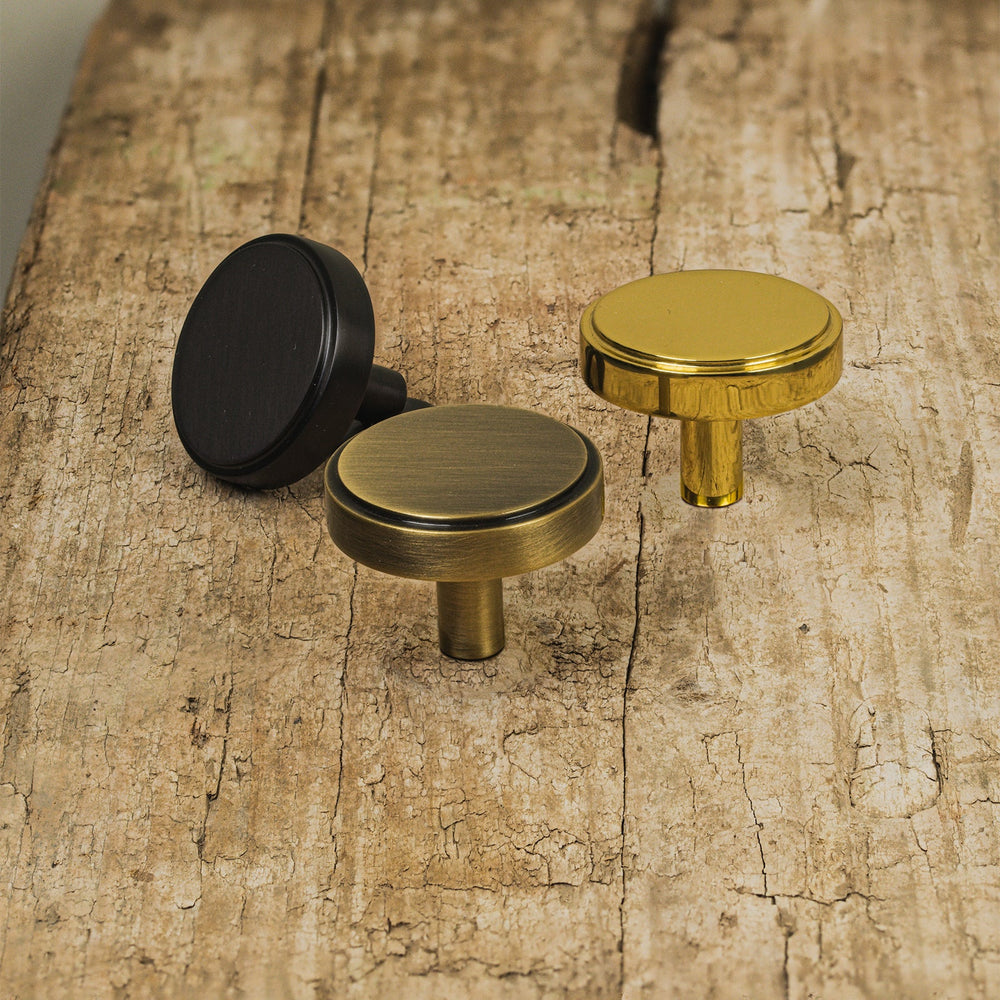 Stepped Disc Cabinet Knobs are a simple design offering a timeless look for your cupboards and drawers. A ringed design made from solid brass. These knobs are available in 32mm and 38mm sizes, in a choice of six distinctive lacquered finishes.