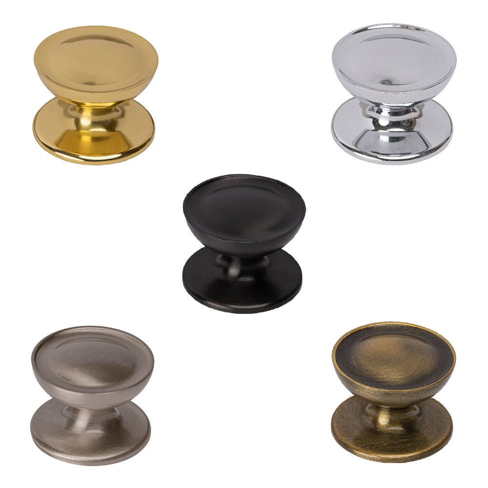 Surrey Cabinet Knobs offer a simple traditional look for your kitchen cupboards and drawers. A round knob made from solid brass in a one piece casting set on a small rose. These knobs are available in 32mm and 38mm sizes, in a choice of six distinctive finishes: aged brass, polished brass, polished chrome, matt bronze, satin nickel and satin brass. These are rear fixing knobs supplied with screws.